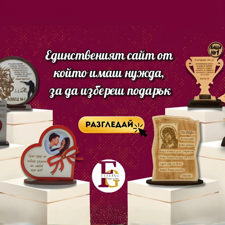Ние сме FEELING и произвеждаме висококачествени дървени сувенири и подаръци за всеки повод – рожден ден, имен ден , годишнина.... С нас винаги ще откриете нещо специално за любимите хора! 🎁